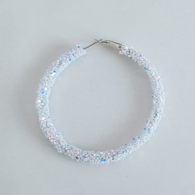 White AB Glitter Hoop Earrings