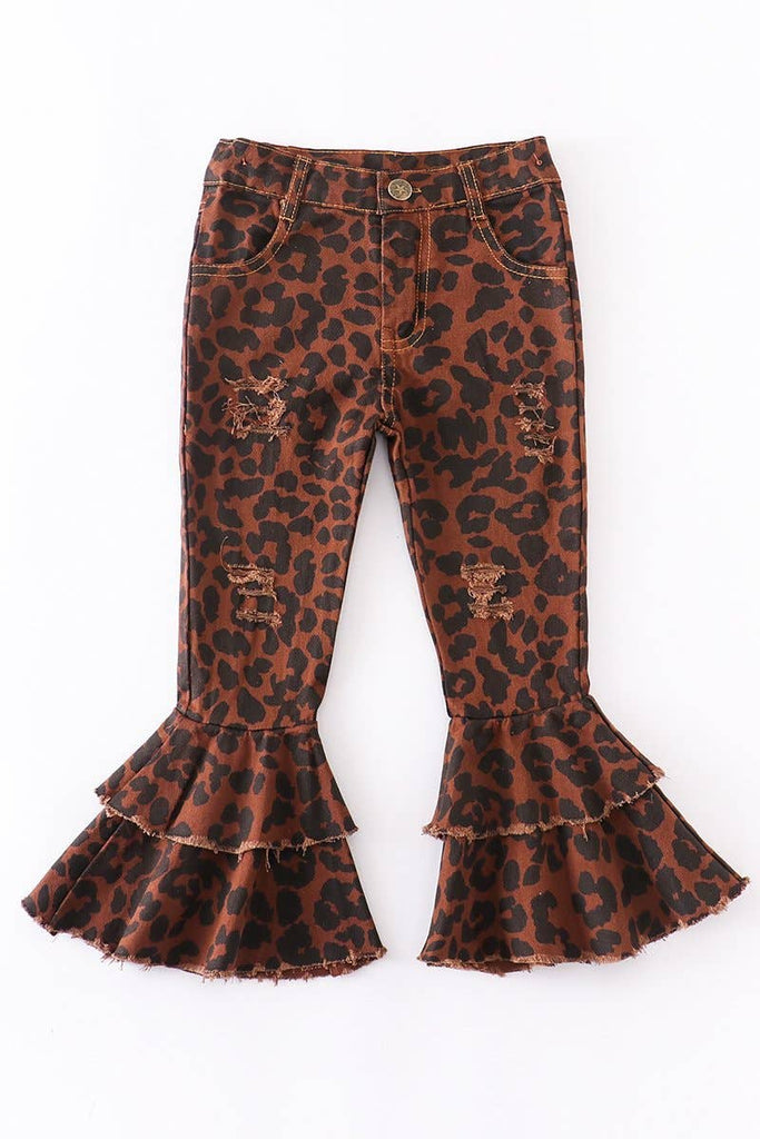 Girls Leopard double layered destressed denim jeans