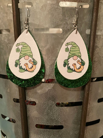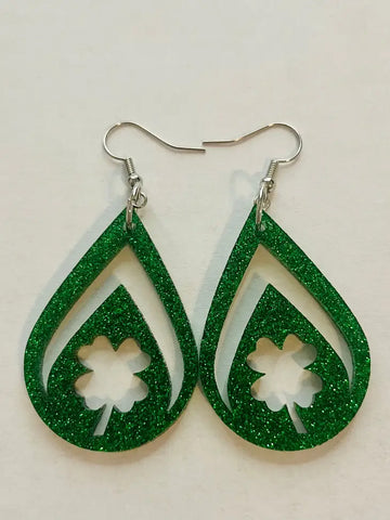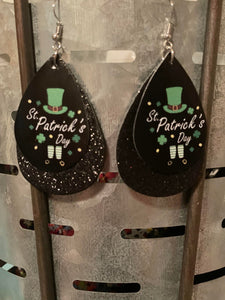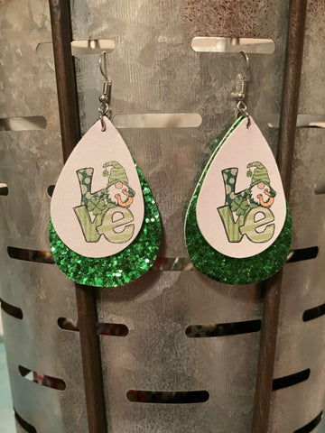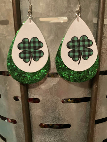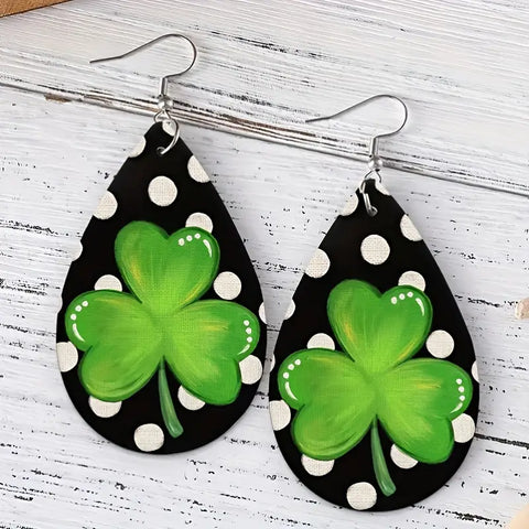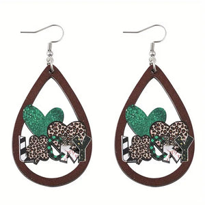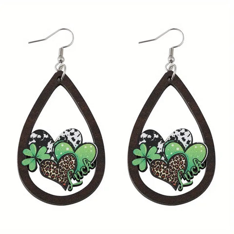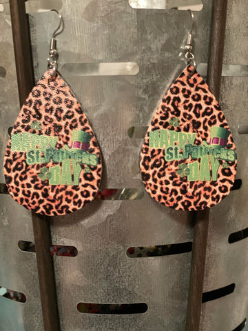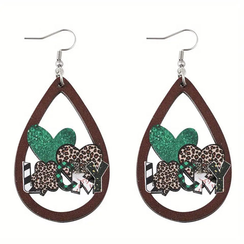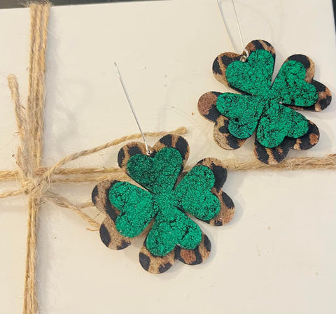 St. Patrick's Day Leopard Print Heart Clover LUCKY Earrings