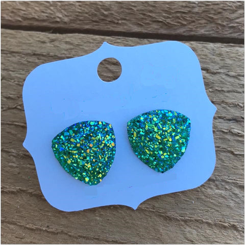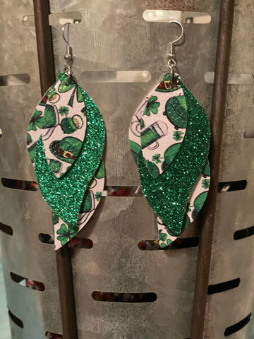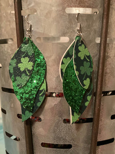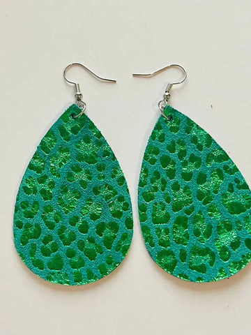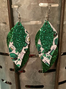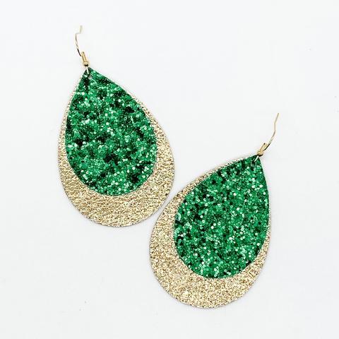 2.5" Green Glitter & Metallic Gold Layered Teardrops (leather)