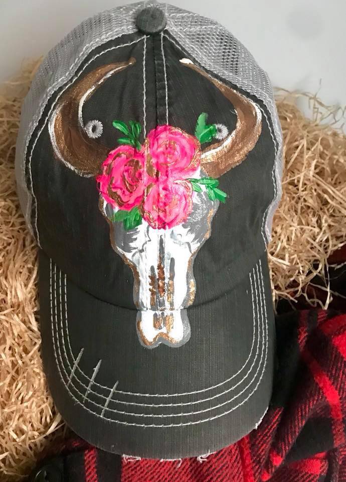 Bull Skull Hand Painted Hat
