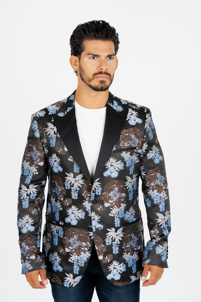 Men's Double Button Black Woven Printed Blazer